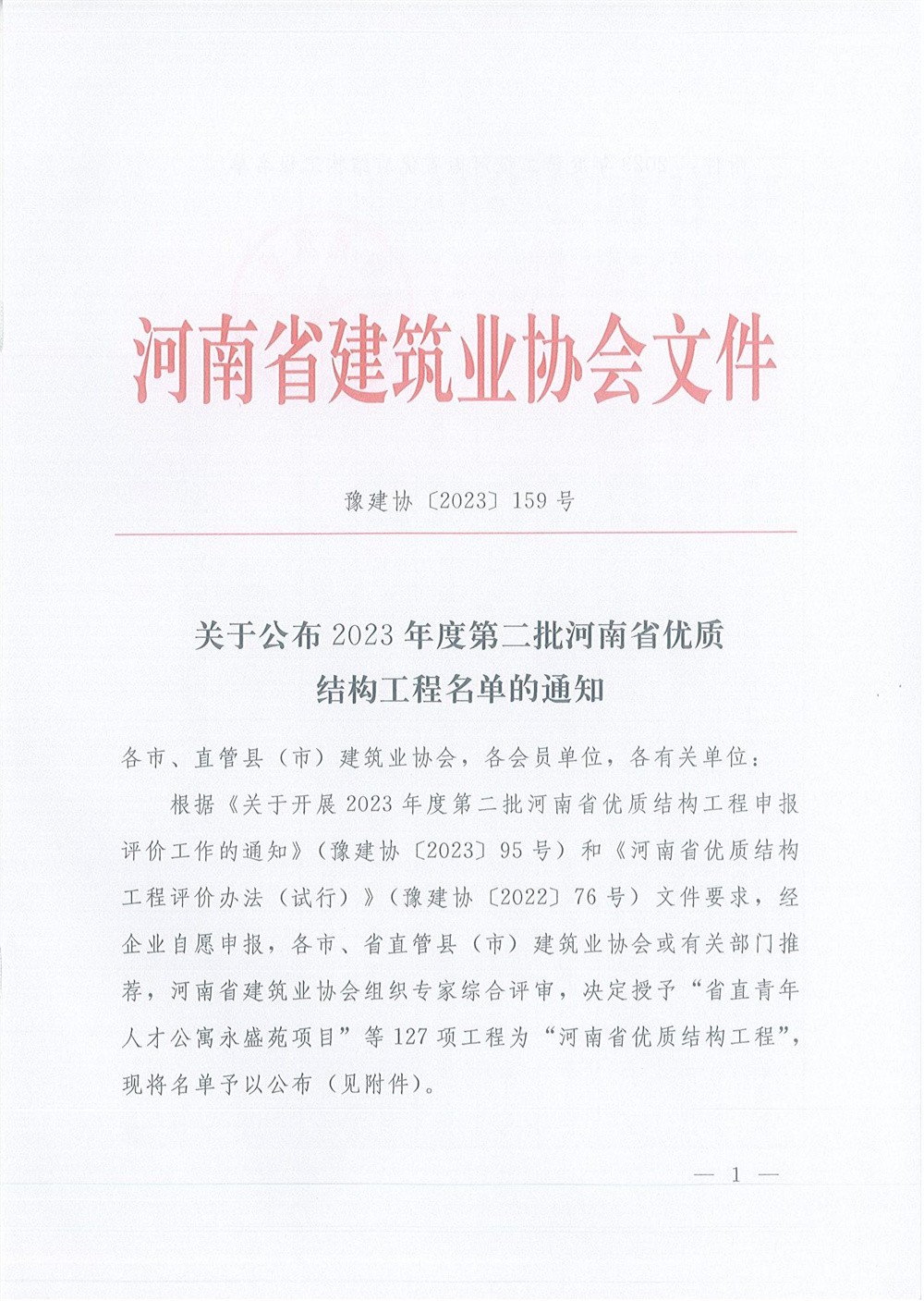 热烈庆祝我司荣获“河南省优 质结构工程”