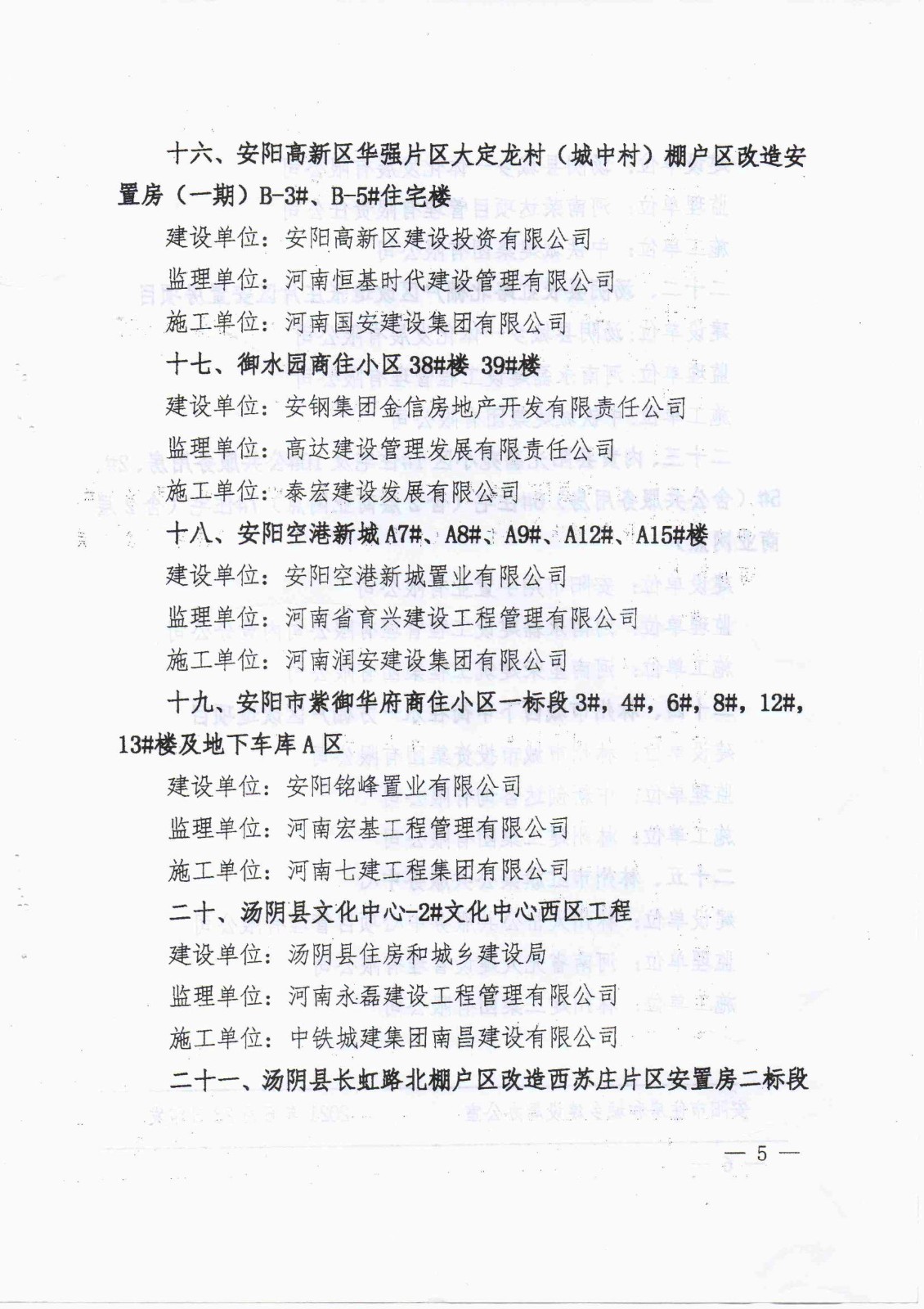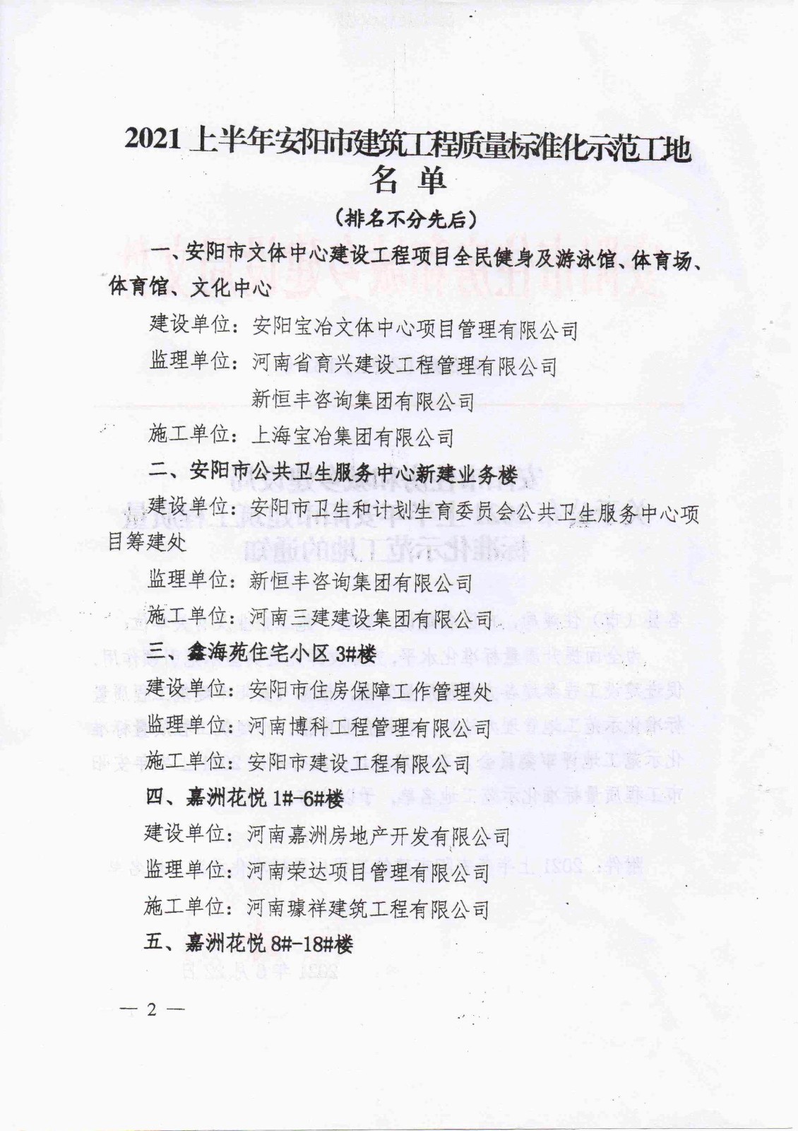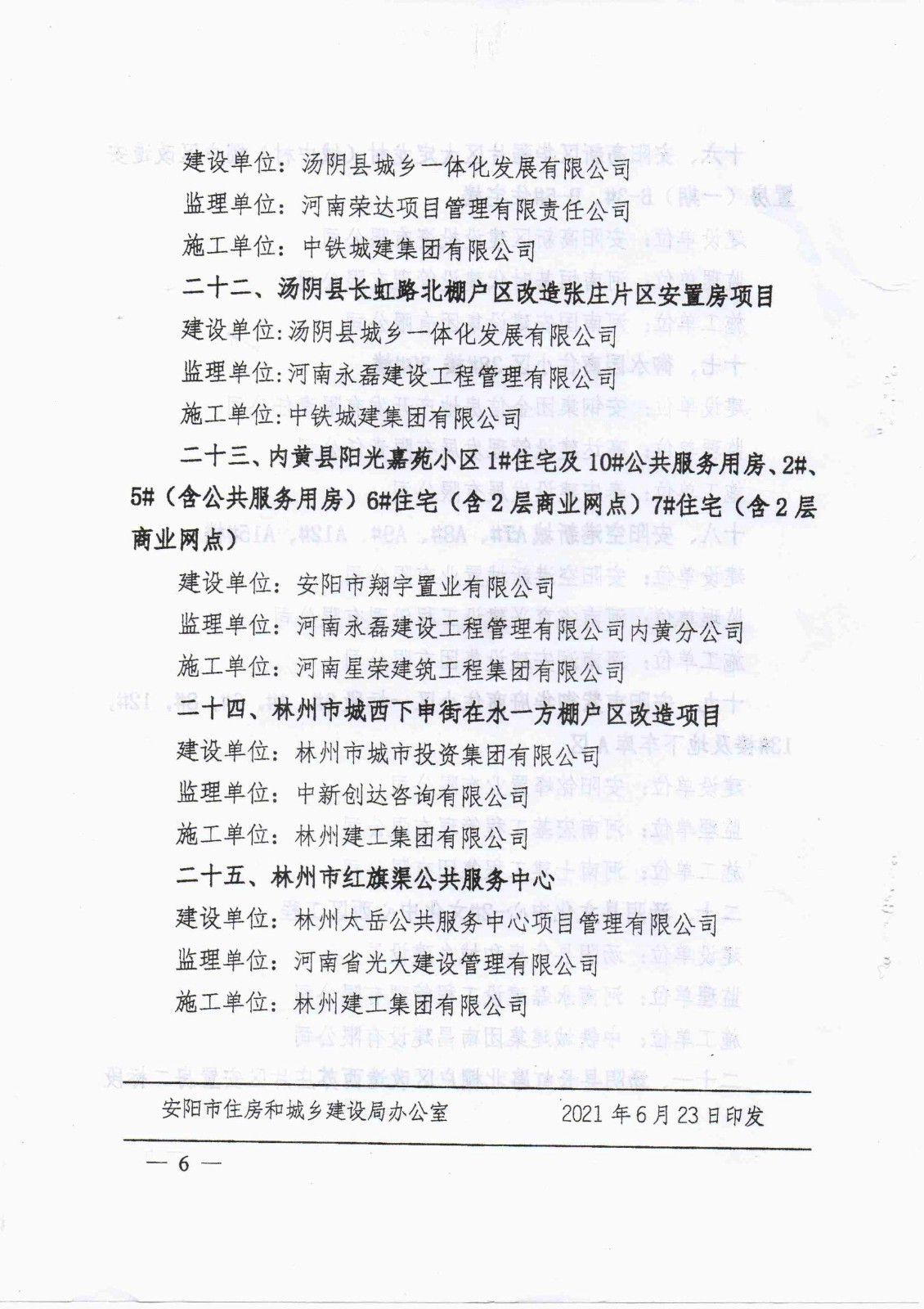 安阳市住房和城乡建设局关于公布2021年度上半年安阳市建筑工程质量标准化示范工地的通知