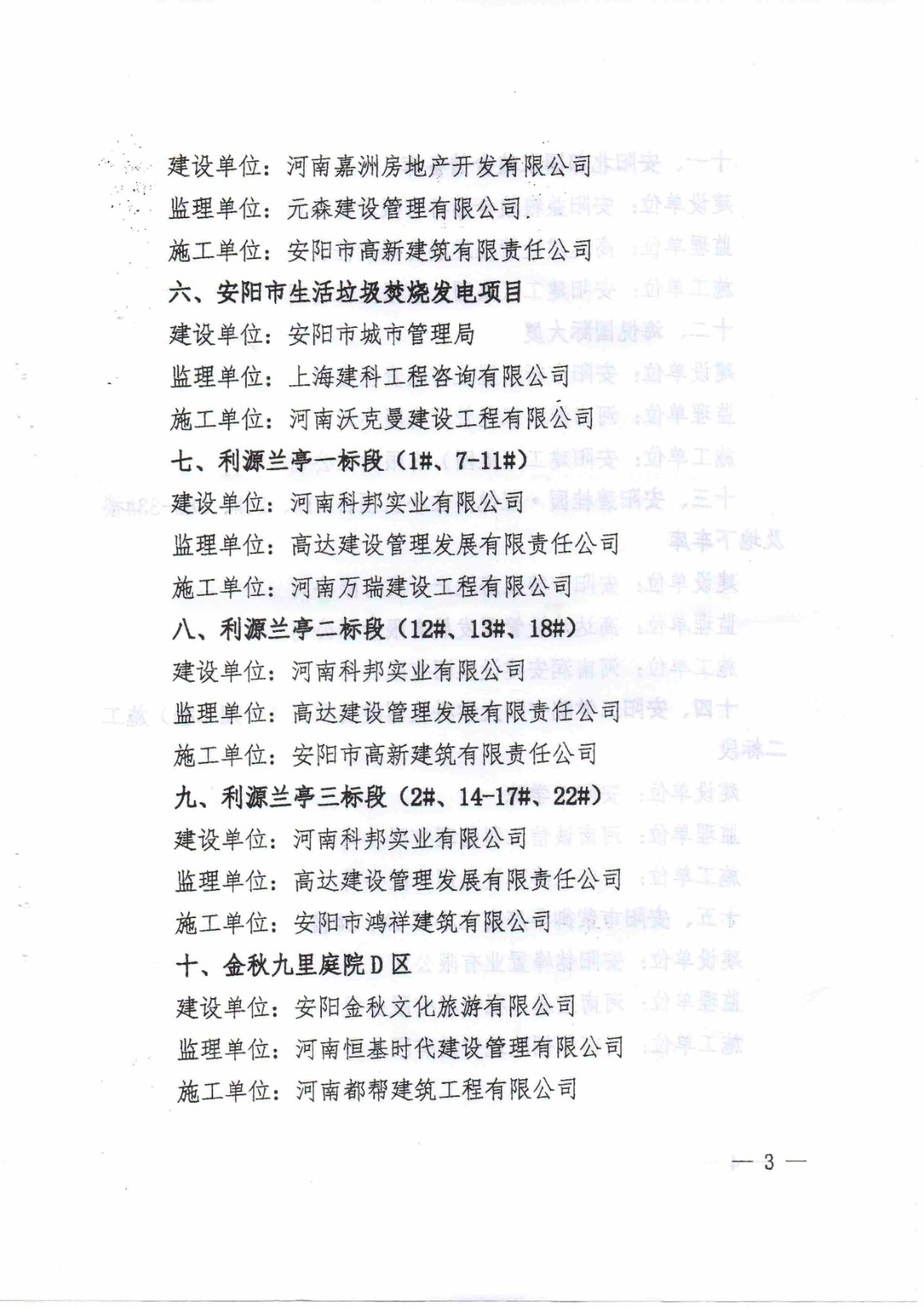 安阳市住房和城乡建设局关于公布2022年度下半年安阳市建筑工程安全文明标准化示范工地的通知