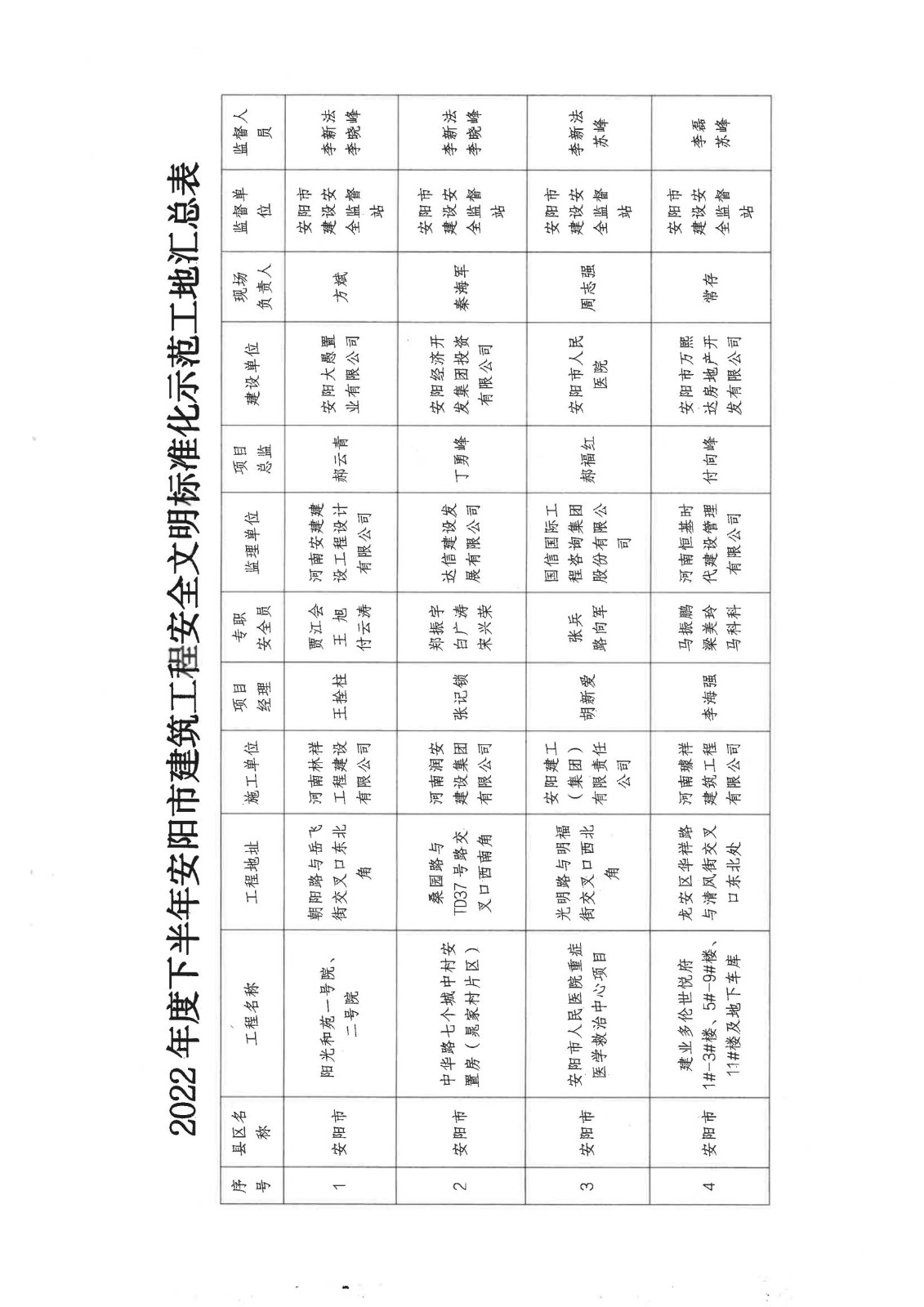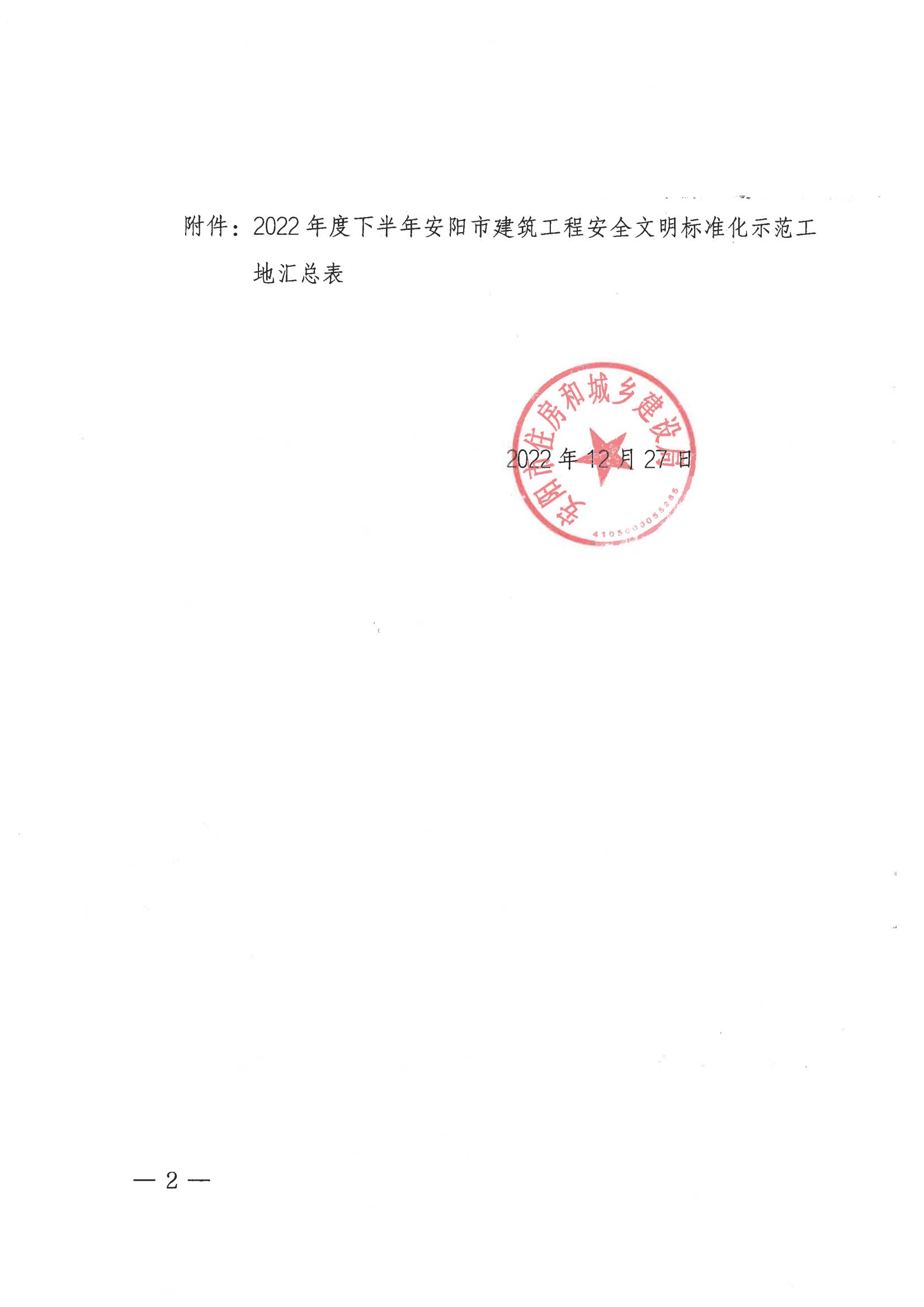 安阳市住房和城乡建设局关于公布2022年度下半年安阳市建筑工程安全文明标准化示范工地的通知