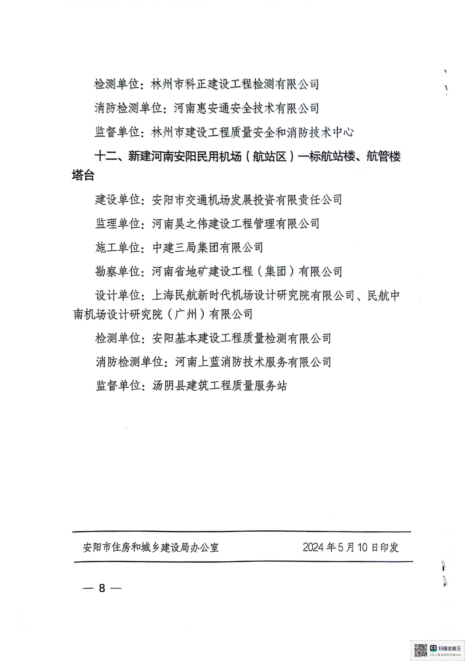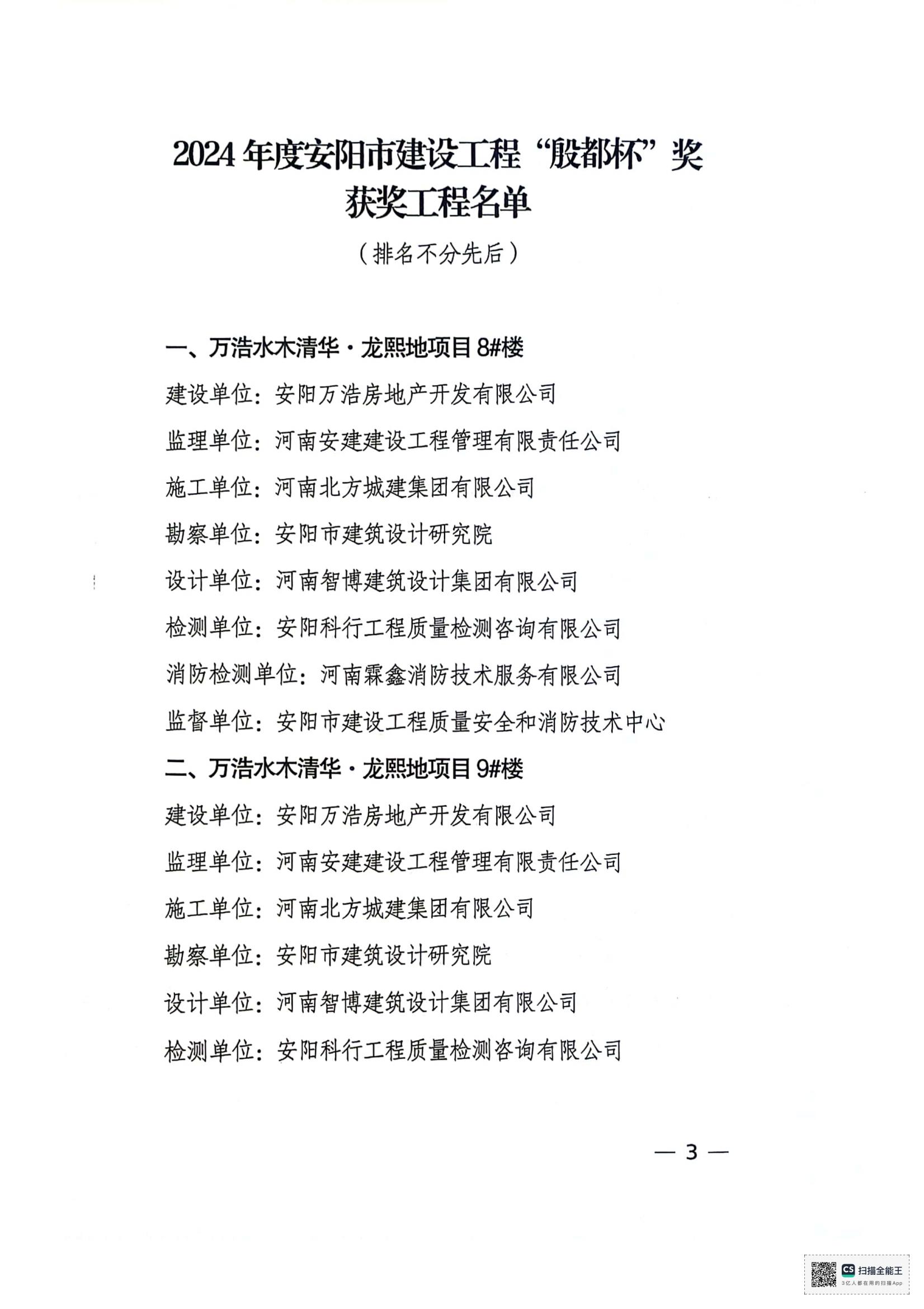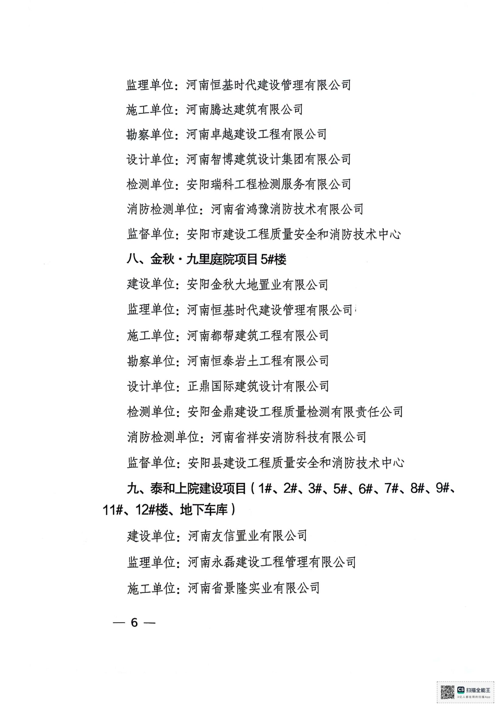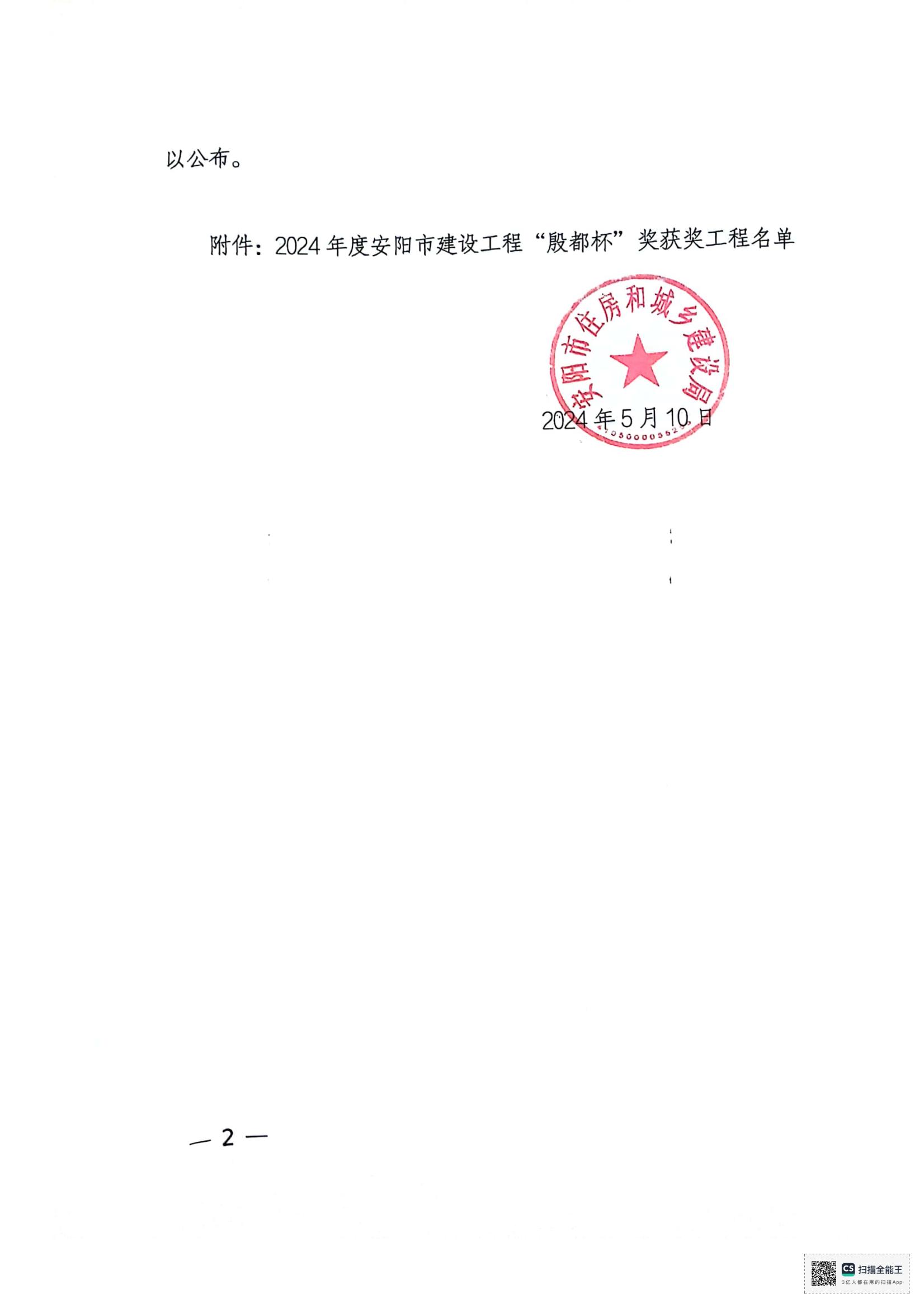 安阳市住房和城乡建设局文件关于公布2024年度安阳市建设工程”殷都杯“奖工程项目的通知