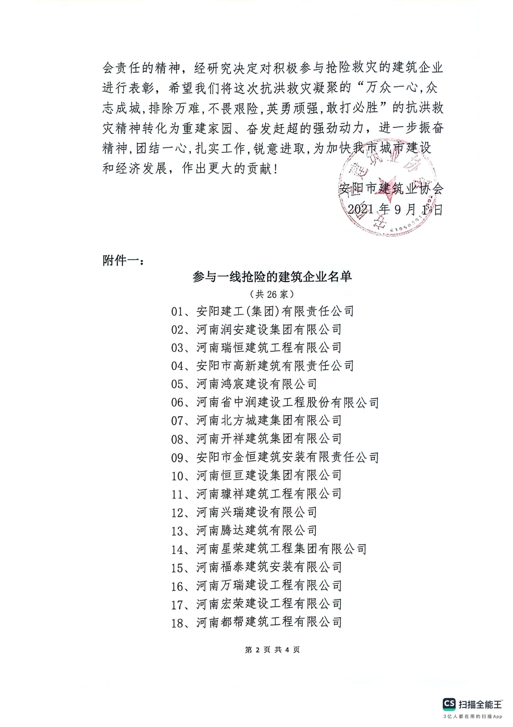 关于表彰‘’7·21‘’安阳特大暴雨洪涝灾害中积极参与抢险救灾的建筑企业的决定